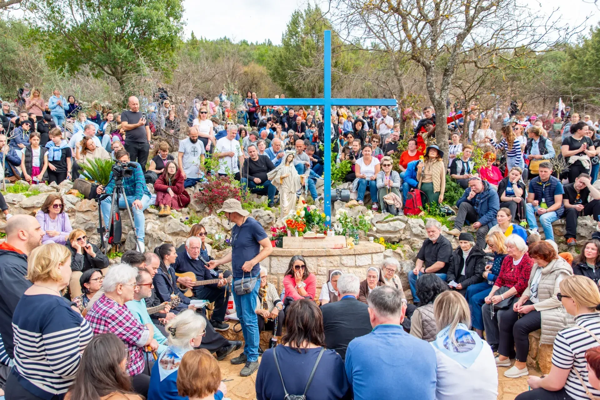 Am Fuss des Erscheinungsberges steht das BLAUE KREUZ, das 1985 dort aufgestellt wurde. An diesem Ort trifft sich die Gebetsgruppe des Sehers Ivan regelmässig seit dem 4. Juli 1982. Es ist auch ein Ort, an dem Pilgerinnen und Pilger, die den Berg nicht mehr erklimmen können, sich im Gebet mit der Muttergottes verbinden können. An diesem heiligen Ort ist die Muttergottes einzelnen Sehern oftmals erschienen.